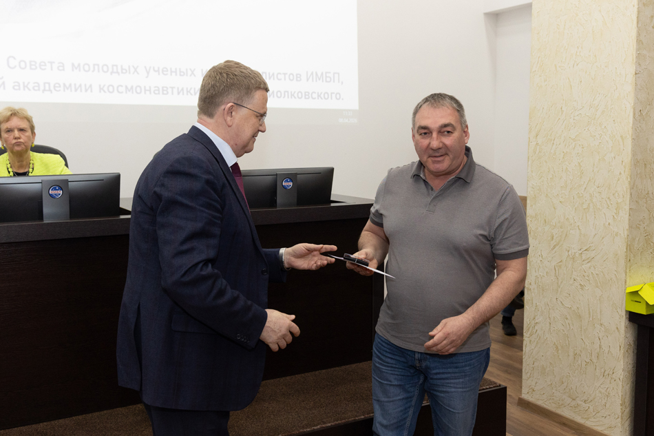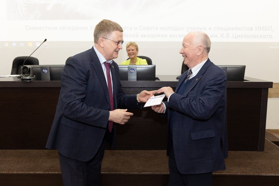 Ученого совета ИМБП РАН, Совета молодых ученых и специалистов Российской академии наук и Российской академии космонавтики им. К.Э. Циолковского. На заседании выступил Соловьев В.А.,