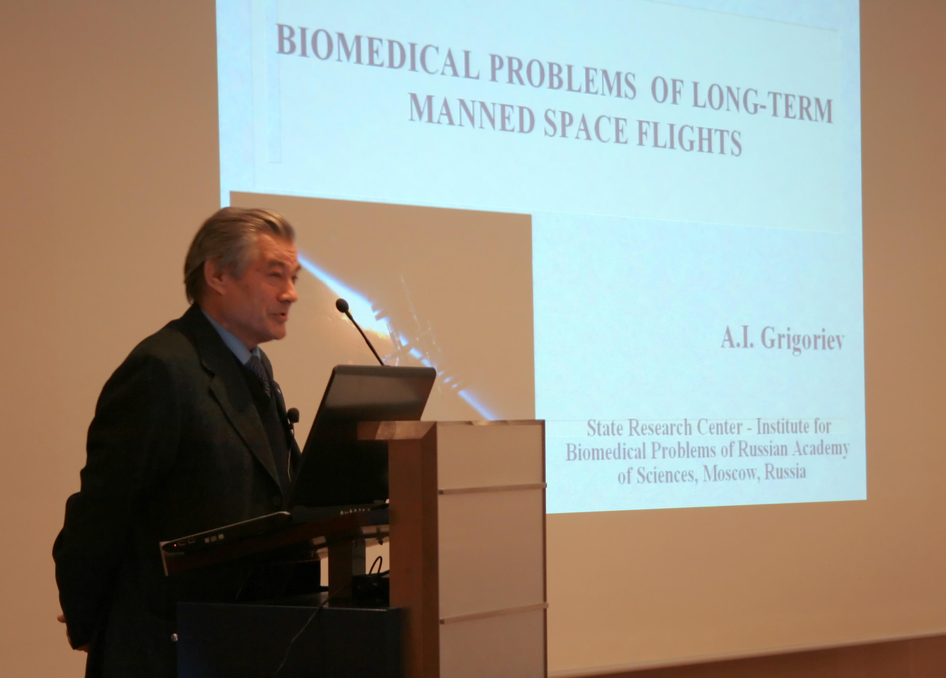 С первым докладом "Медико-биологические проблемы длительного космического полета" на конгрессе выступил директор ГНЦ РФ - ИМБП РАН А.И.Григорьев.