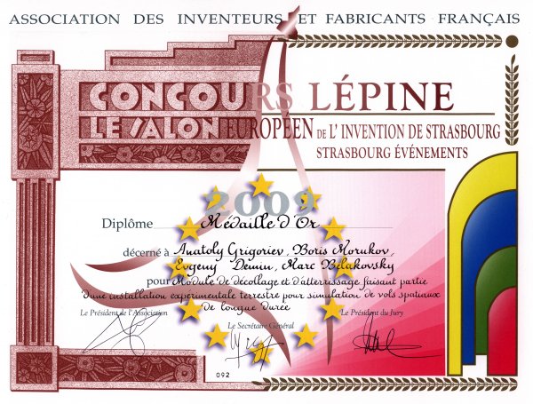 Со 4 по 14 сентября 2009 года Институт принимал участие в Европейском салоне изобретений "Конкурс Лепин", проводившемся в г. Страсбург, Франция. Разработка Института "Модуль взлетно-посадочный наземного экспериментального комплекса для моделирования длительных космических полетов, в том числе на Марс" (Авторы: Григорьев А.И., Моруков Б.В., Демин Е.П., Белаковский М.С.) награждена золотой медалью и дипломом.